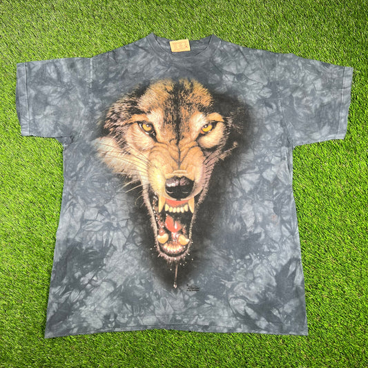 1999 Wolf The Mountain Blue Tie Dye Tee Size Large USED v16772
