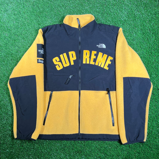 Supreme North Face (2019) Arc Logo Denali Yellow Fleece Size Large USED x15939