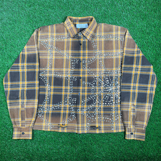 Vale Brown/Black Rhinestone Flannel Size Large USED x15897