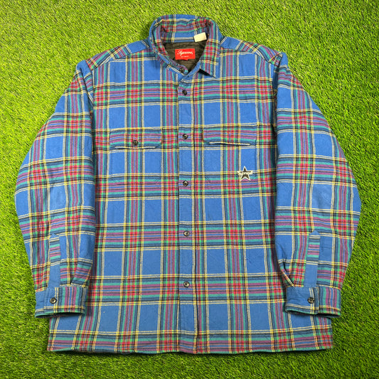 Supreme Quilted Plaid Flannel Dusty Blue (2021) Size Large USED x15808