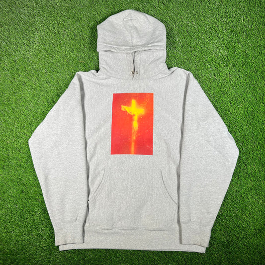 Supreme Andes Serrano Piss Christ Grey Hoodie (2017) Size Large USED x15628