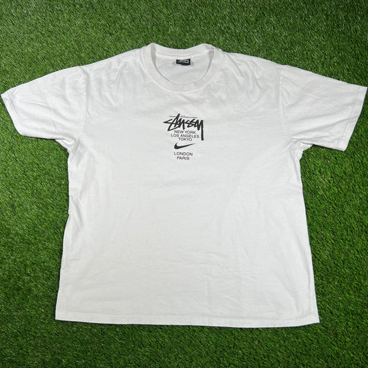 Stussy Nike Citys White Tee Size Large USED x14616