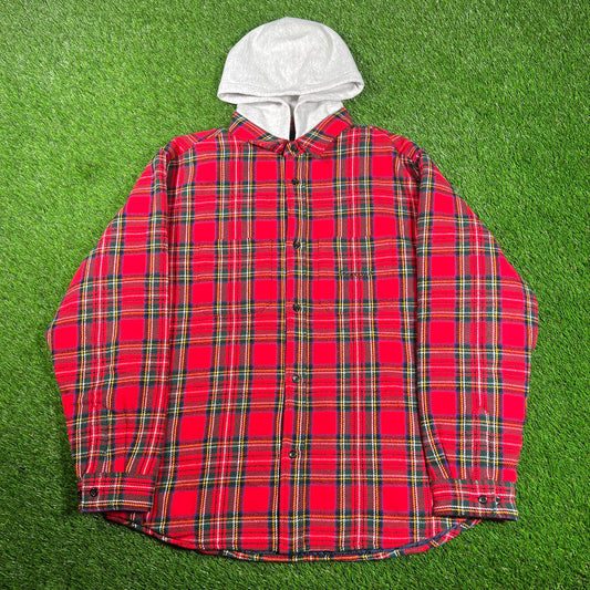 Supreme Red Tartan Flannel Hooded Shirt (2023) Size Large USED x15828