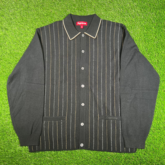 Supreme Black HerringBone Cardigan (2025) Size Large NEW x15826