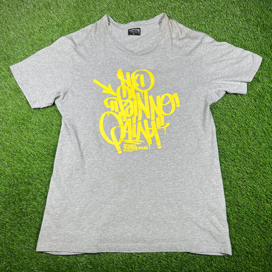 1990s Stussy Writer Gang Grey Tee Size Large USED x14765