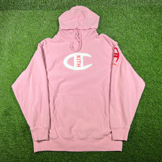 Kith x Champion Pink Logo Hoodie (2018) Size Large USED x14740