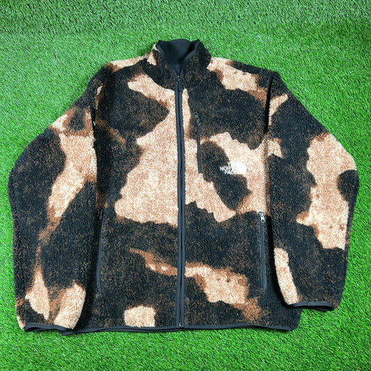 Supreme North Face Bleached Denim Print Fleece Size XL USED x14684