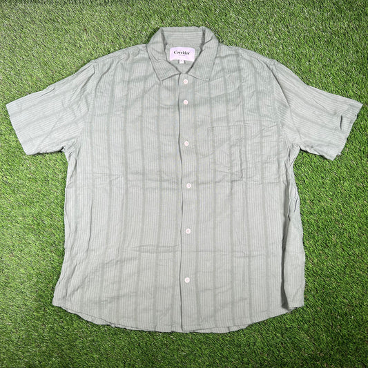 Corridor Striped Seersucker Green Button Up Tee Size XL NEW x14705