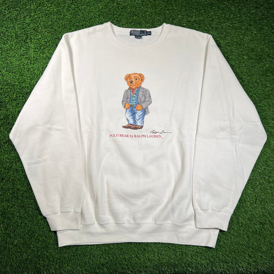 1990s Polo Ralph Lauren Dress Bear White Crewneck Size XXL USED v18423