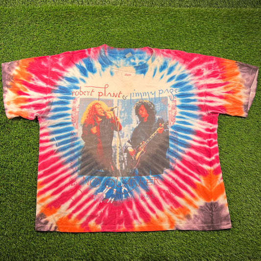 1995 No Quarter Robert Plant Jimmy Page World Tour Tie Dye Tee Size XXL USED v18421