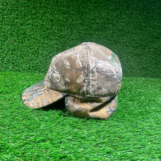 Y2K Carhartt Woodland Camo Hat w/ Ear Covers USED v18424