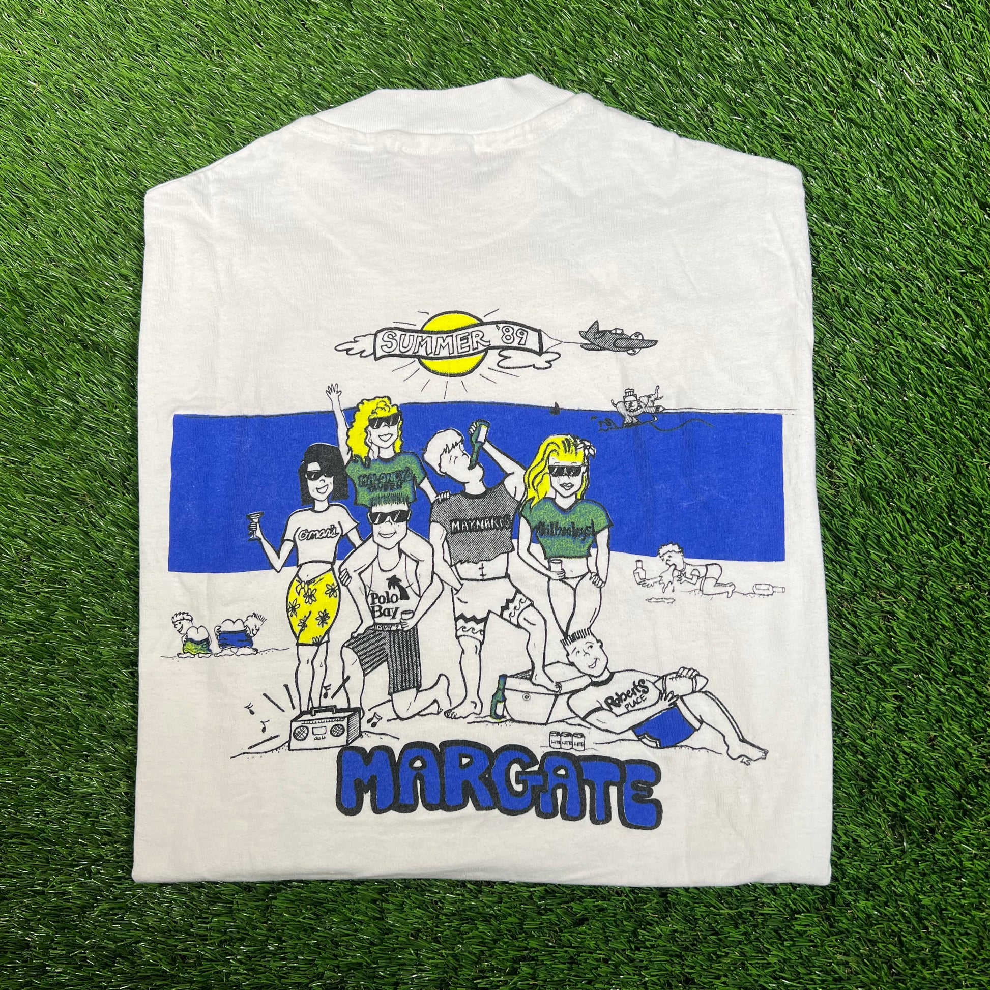 1989 Margate NJ Beach White Tee Size Large USED v18051