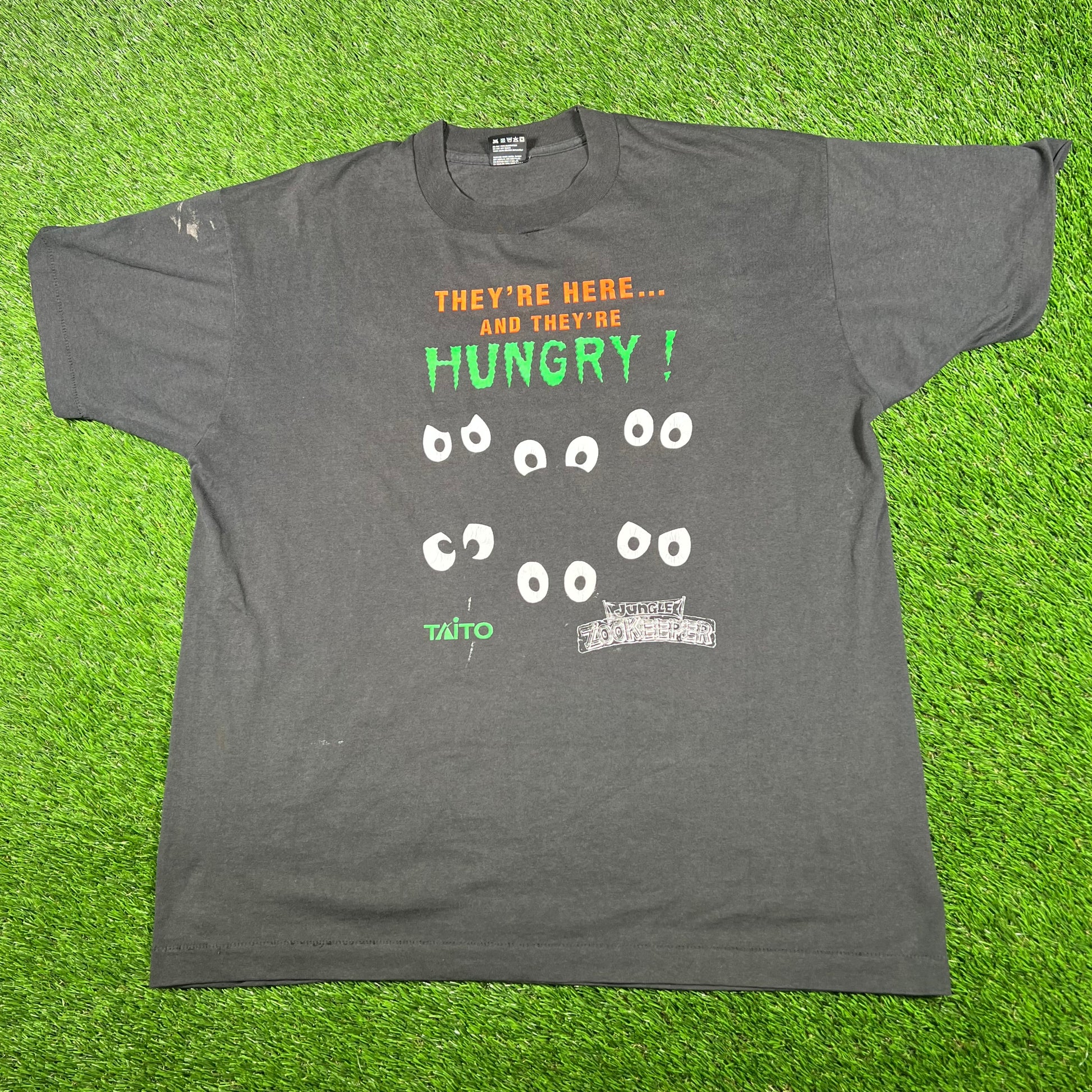 1990s Jungle Zookeeper Hungry Black Tee Size XL USED v17219