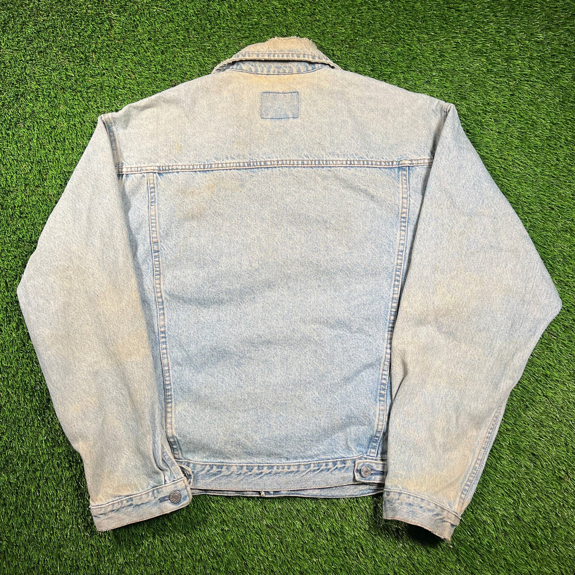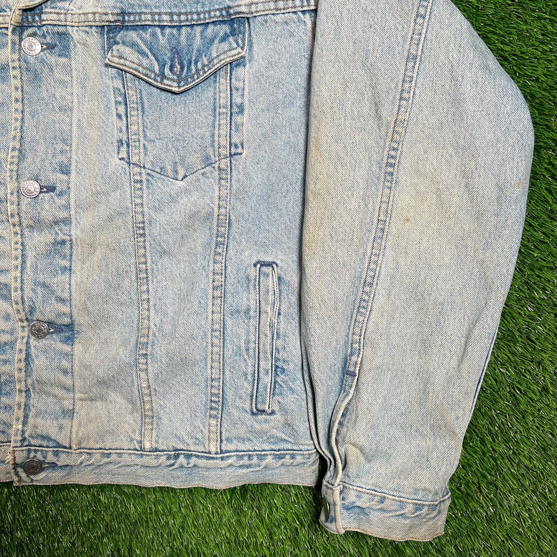 1990s Levis Washed Out Blue Button Up Jean Jacket Size XL USED v18596