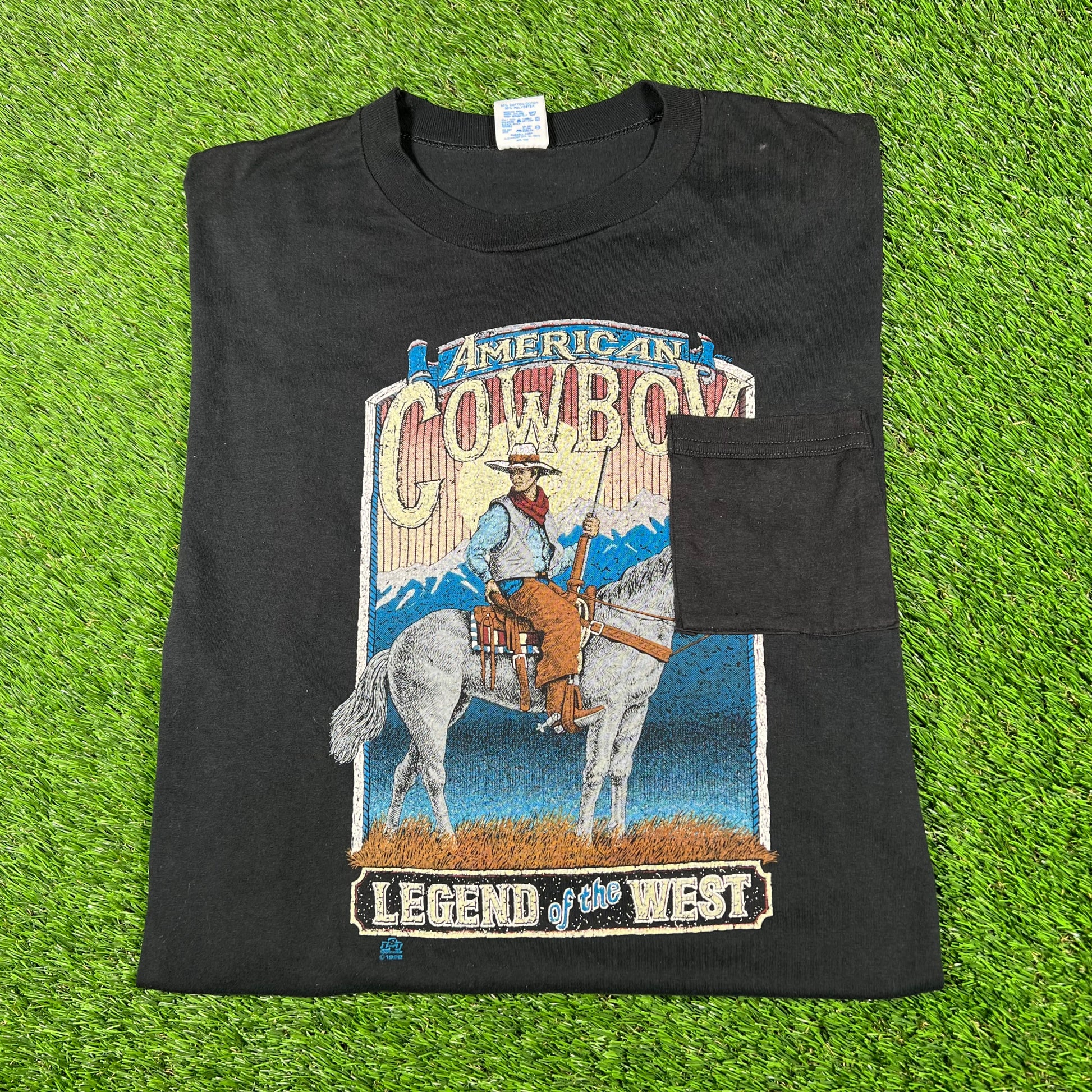 1992 Black American Cowboy Tee Size XL USED v17191