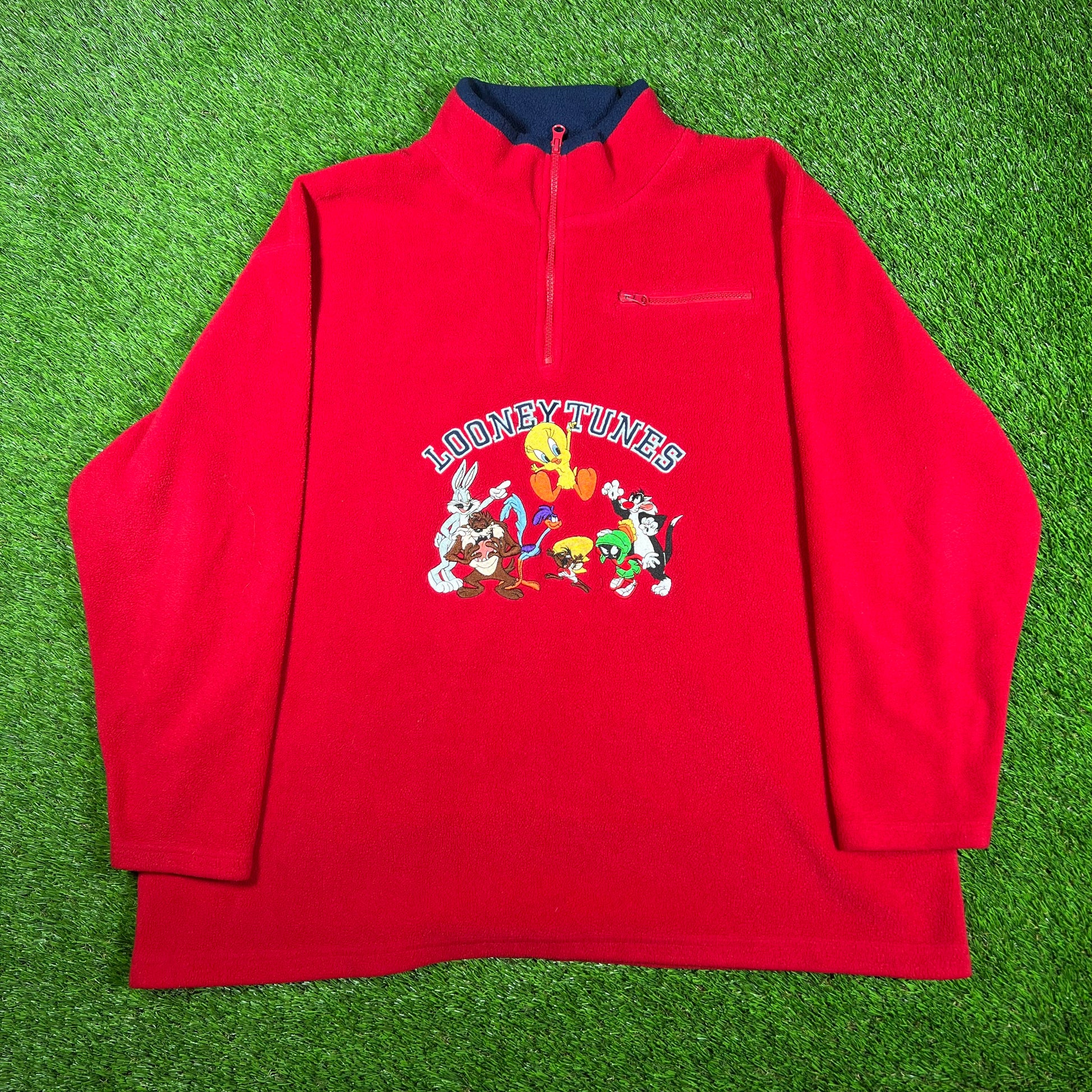 2000 Looney Tunes Embroidered Half Zip Red Fleece Size XXL USED v17046
