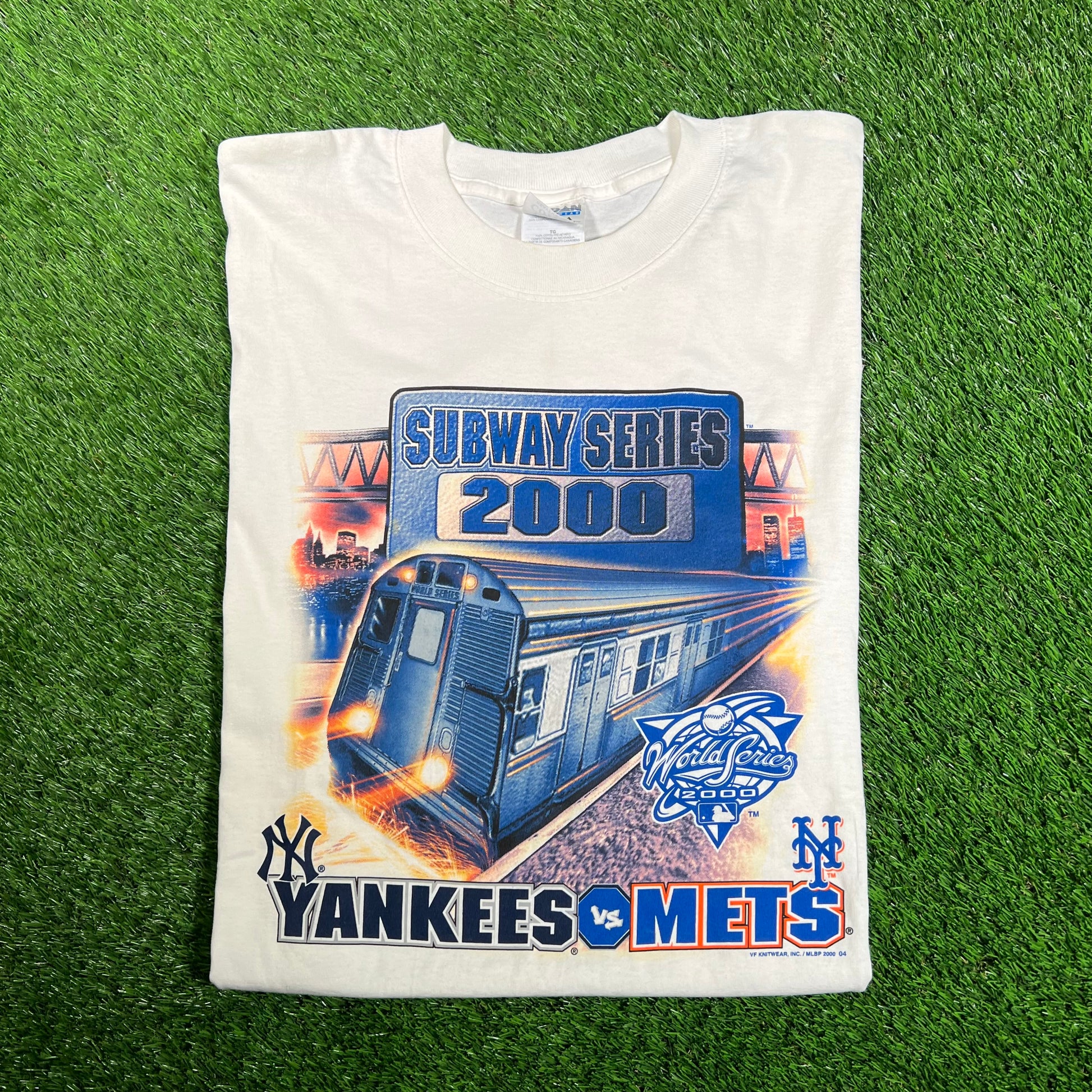 2000 Yankees Mets Subways Series White Tee Size XL USED v18122