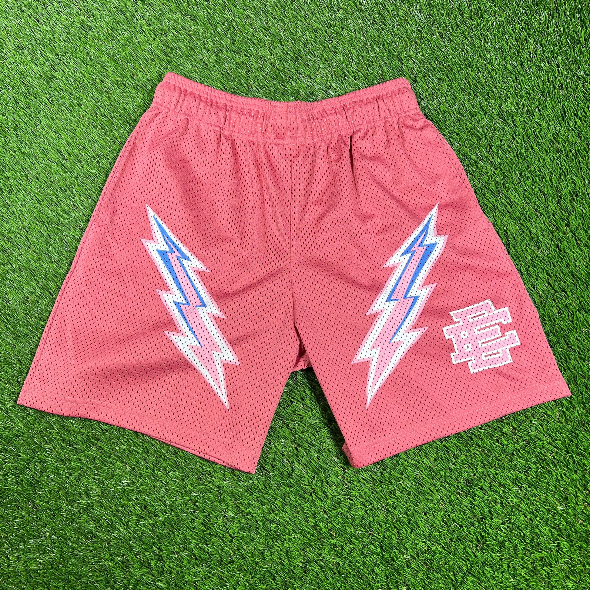Eric Emanuel Pink Short/Pink Logo Lightning Bolts Size Large USED x14450