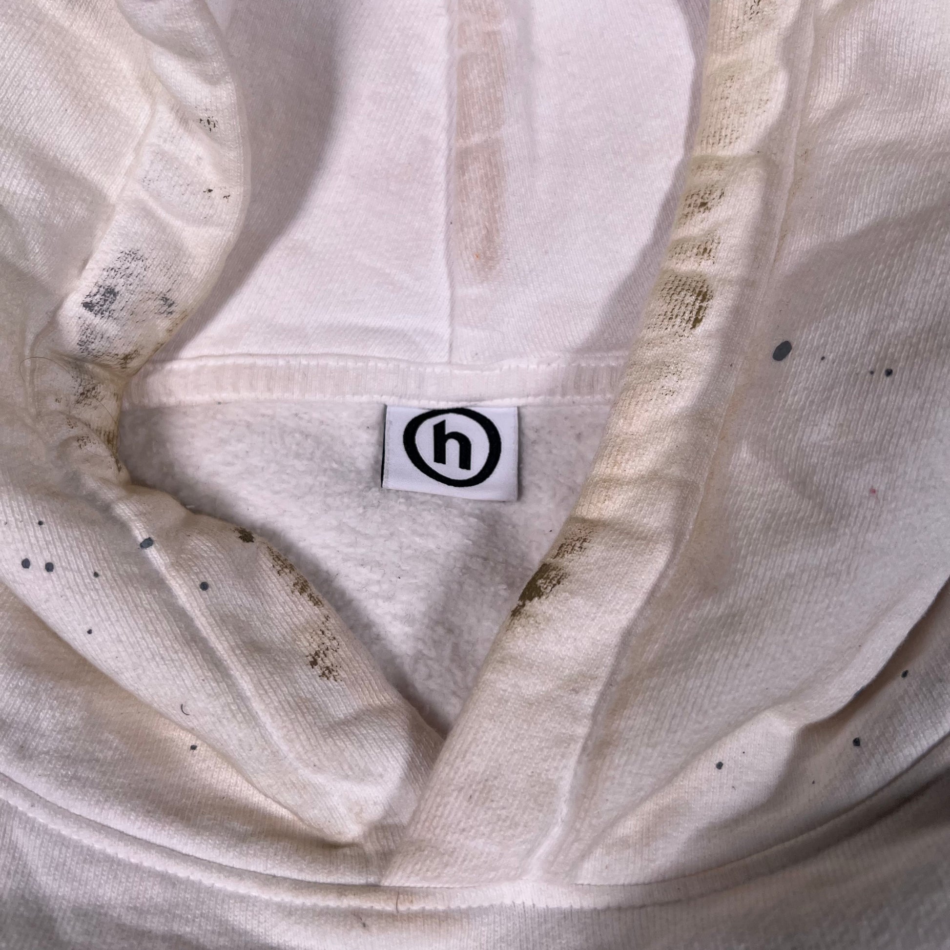 Hidden NY Asics Visual Dynamics Printer Inked White Hoodie Size Small USED x15902