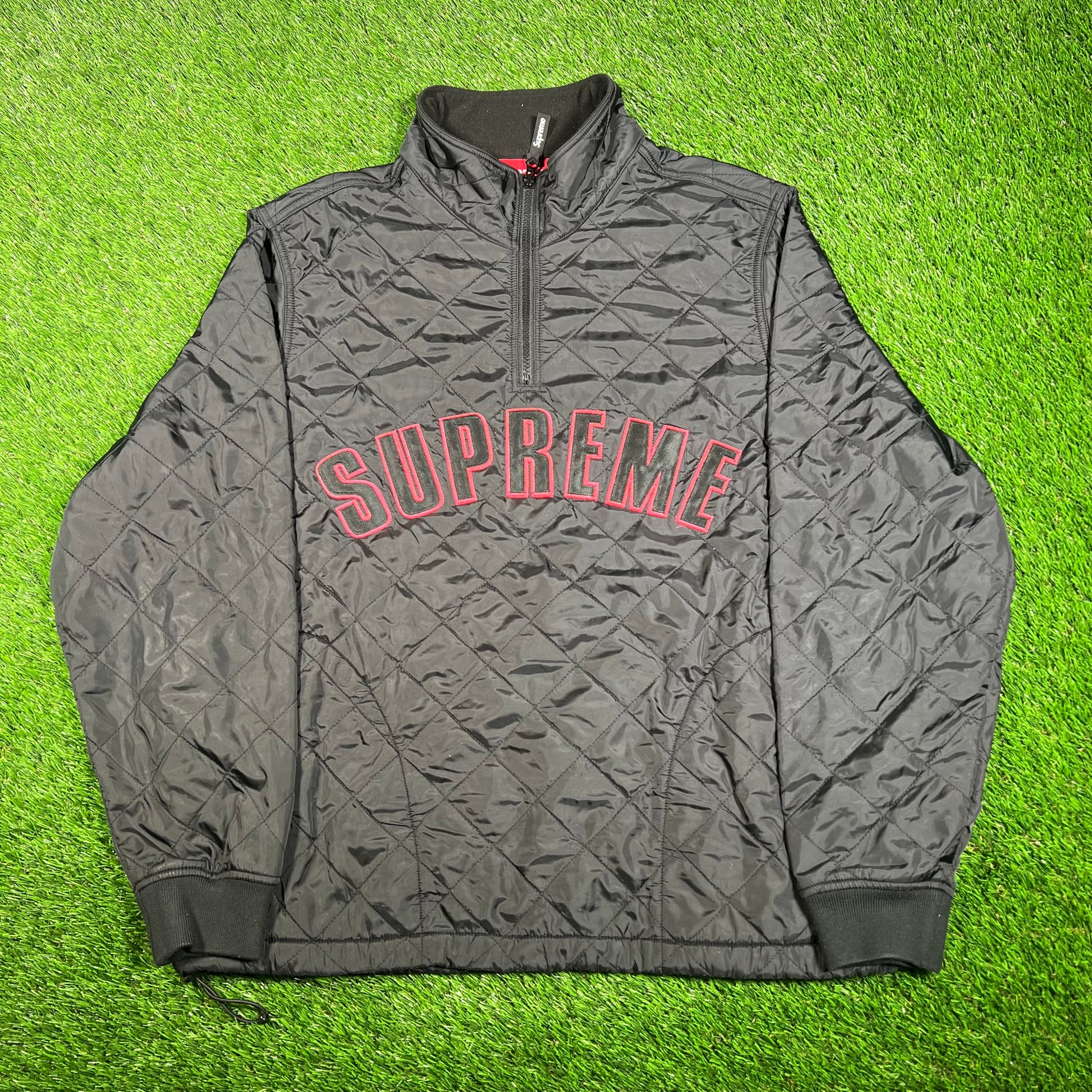 Supreme Arc Logo Quilted Half Zip Black Pullover (2017) Size Large USED x15725