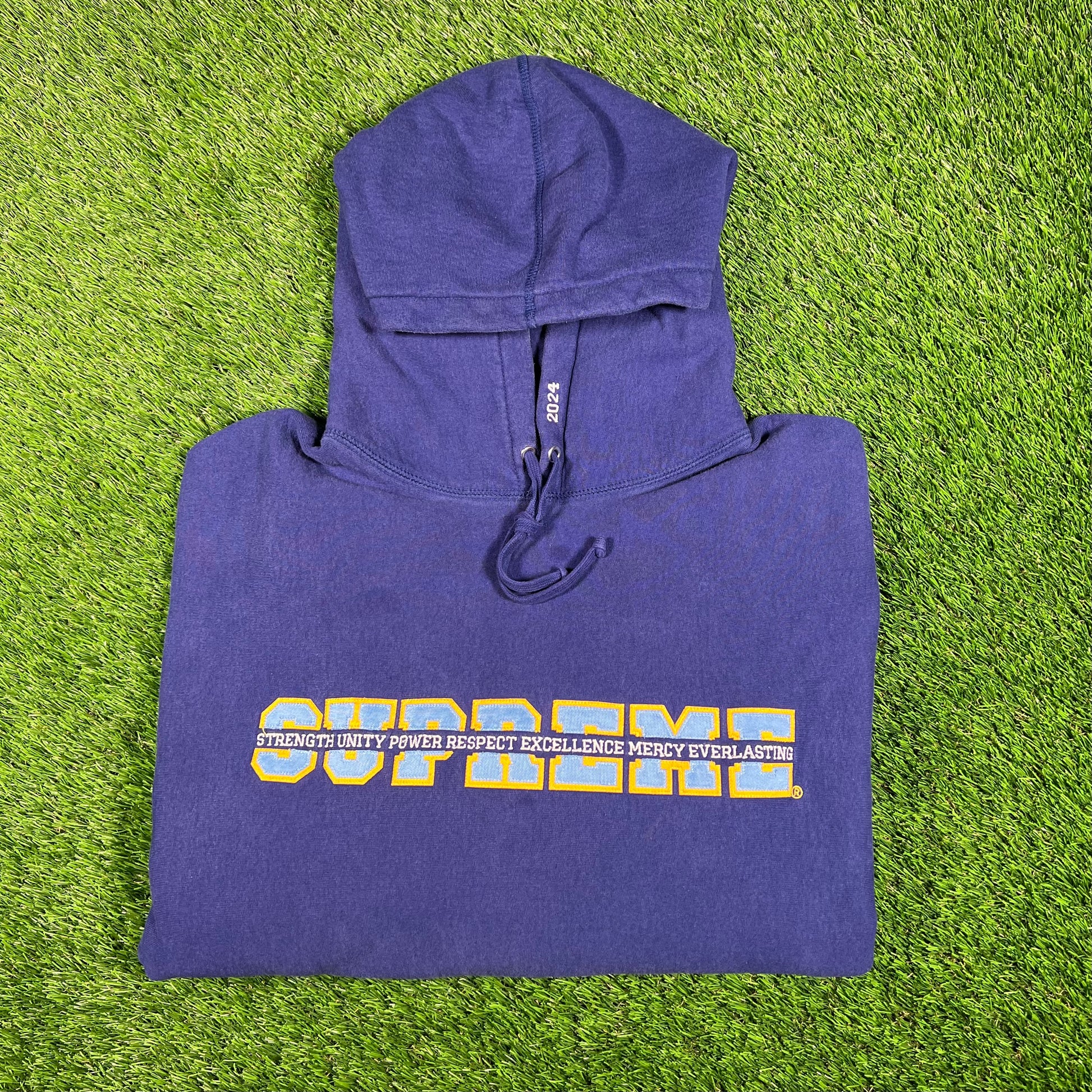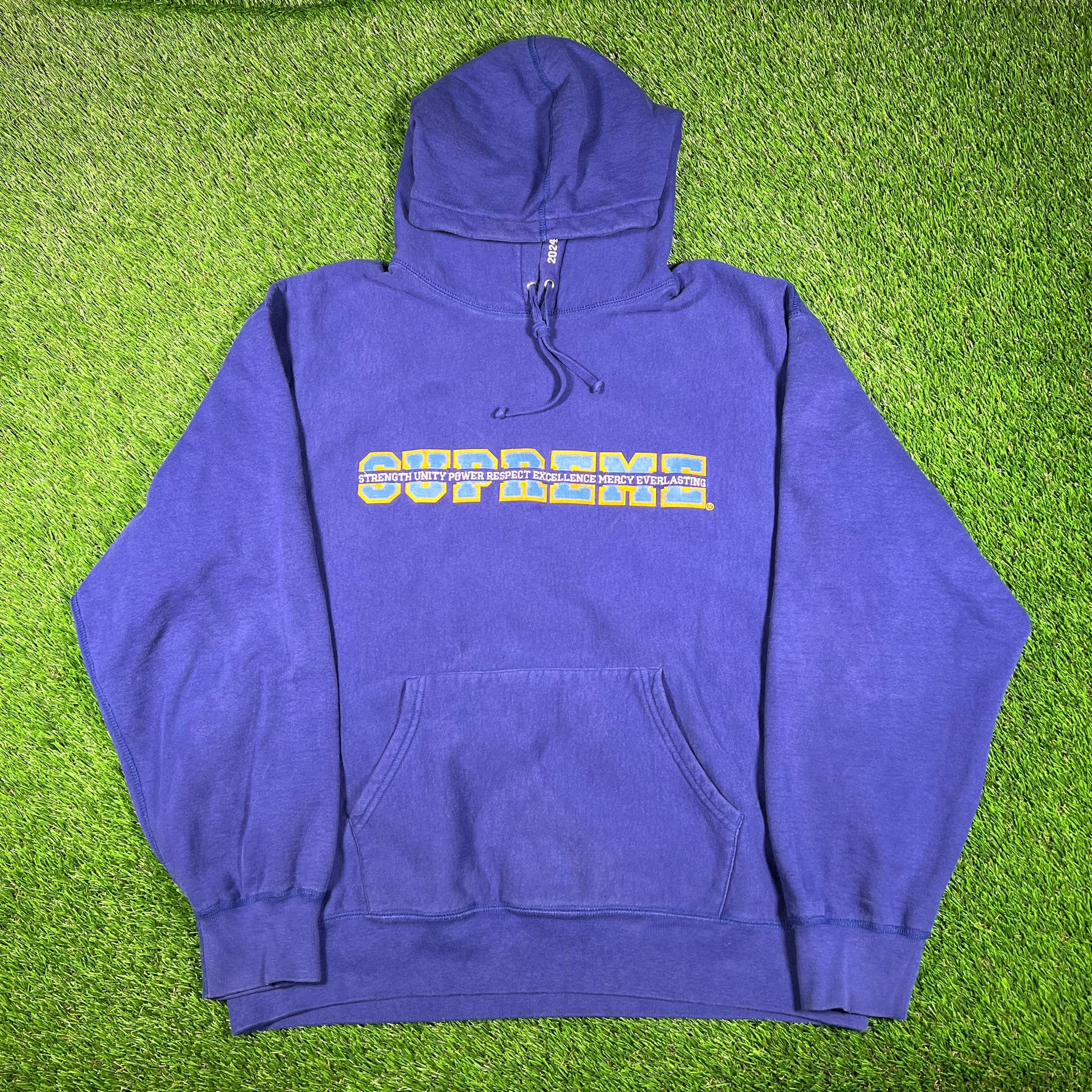 Supreme Collegiate Acronym Dark Royal Hoodie Size XL USED x15871