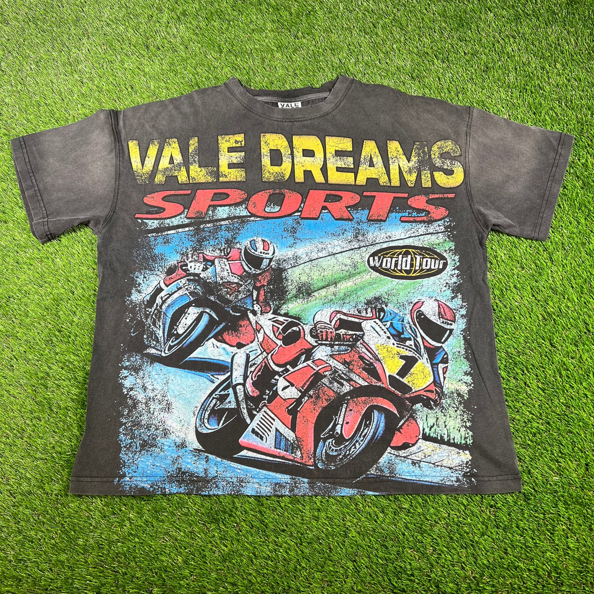Vale Dreams Sport Moto Washed Black Tee Size Large NEW x14460